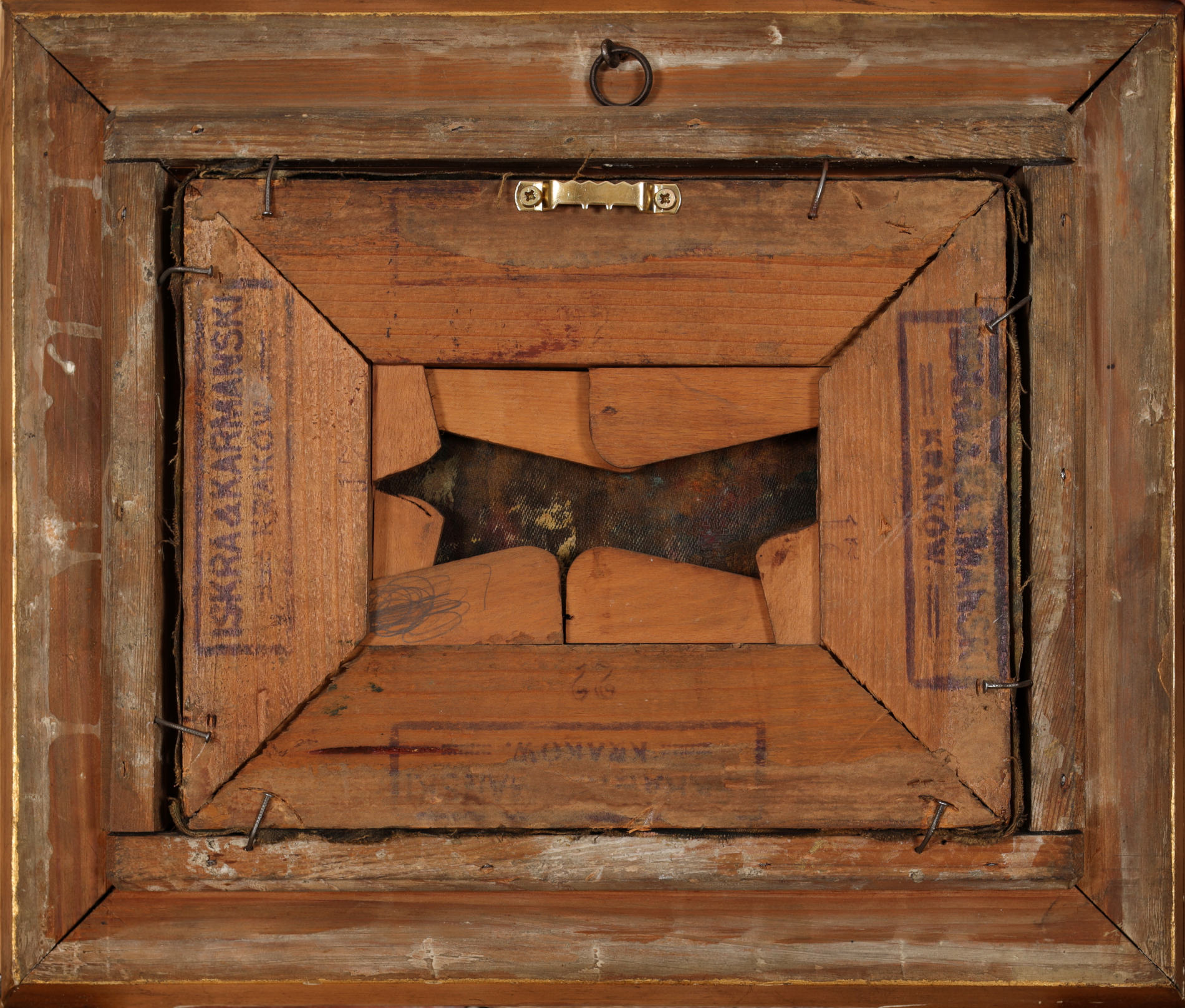 | Sygnowany i datowany l.d.: "A Karpiński | 26 r" Na odwrocie pieczęć krakowskiego magazynu przyborów malarskich Róży Aleksandrowicz. | |