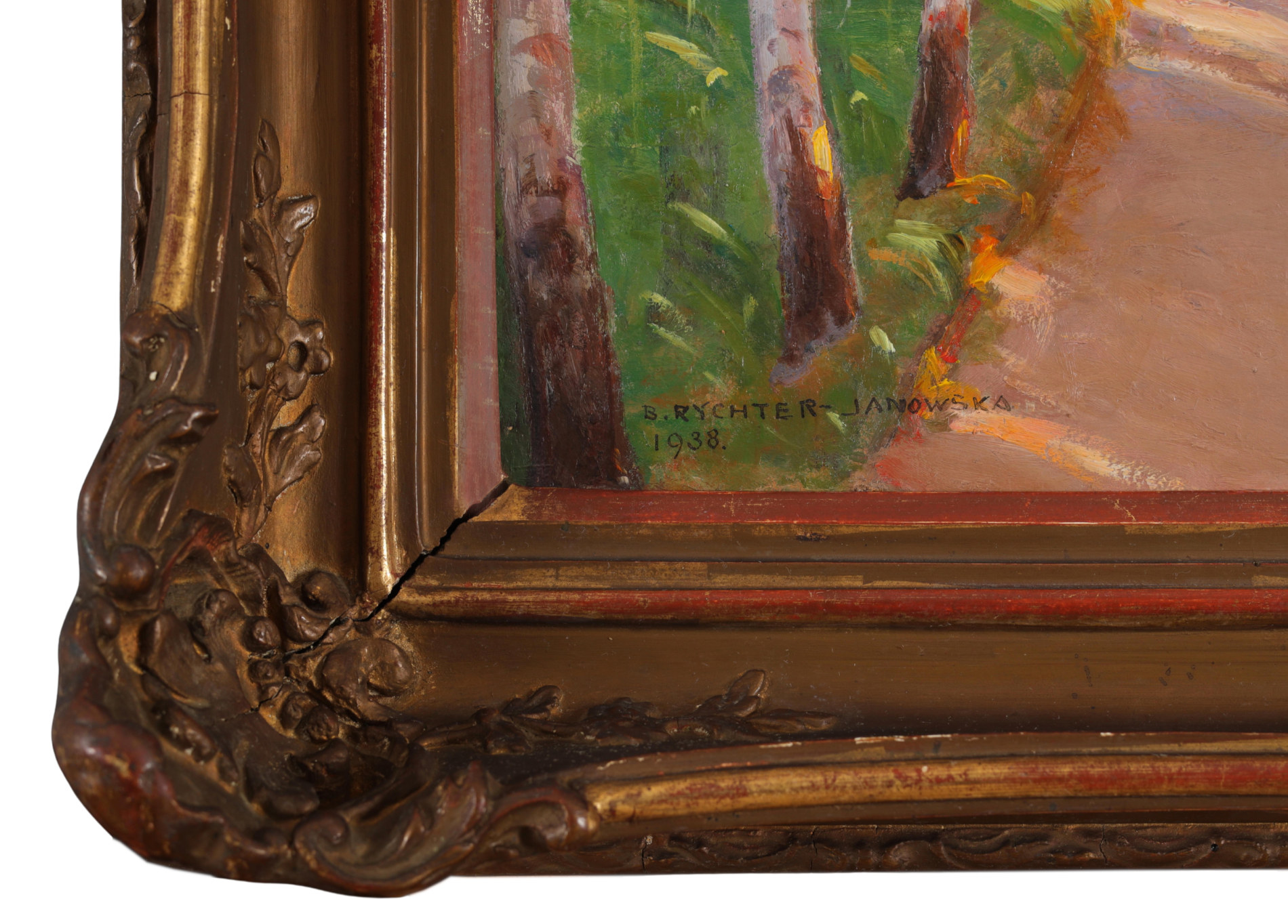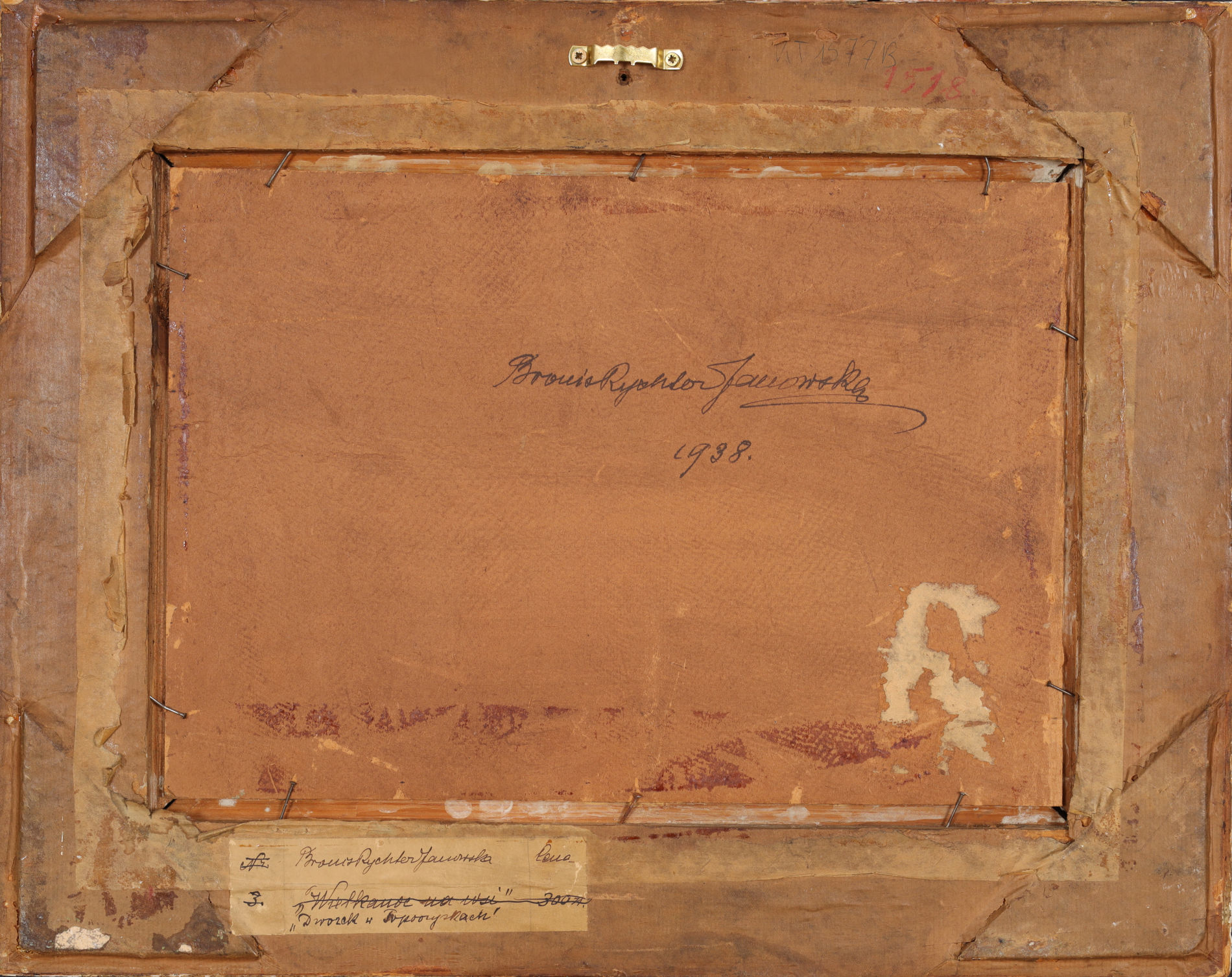 | Sygnowany i datowany p.d.: "B. RYCHTER-JANOWSKA. 1936." Na odwrocie oprawy fragment metki z opisem obrazu. | |