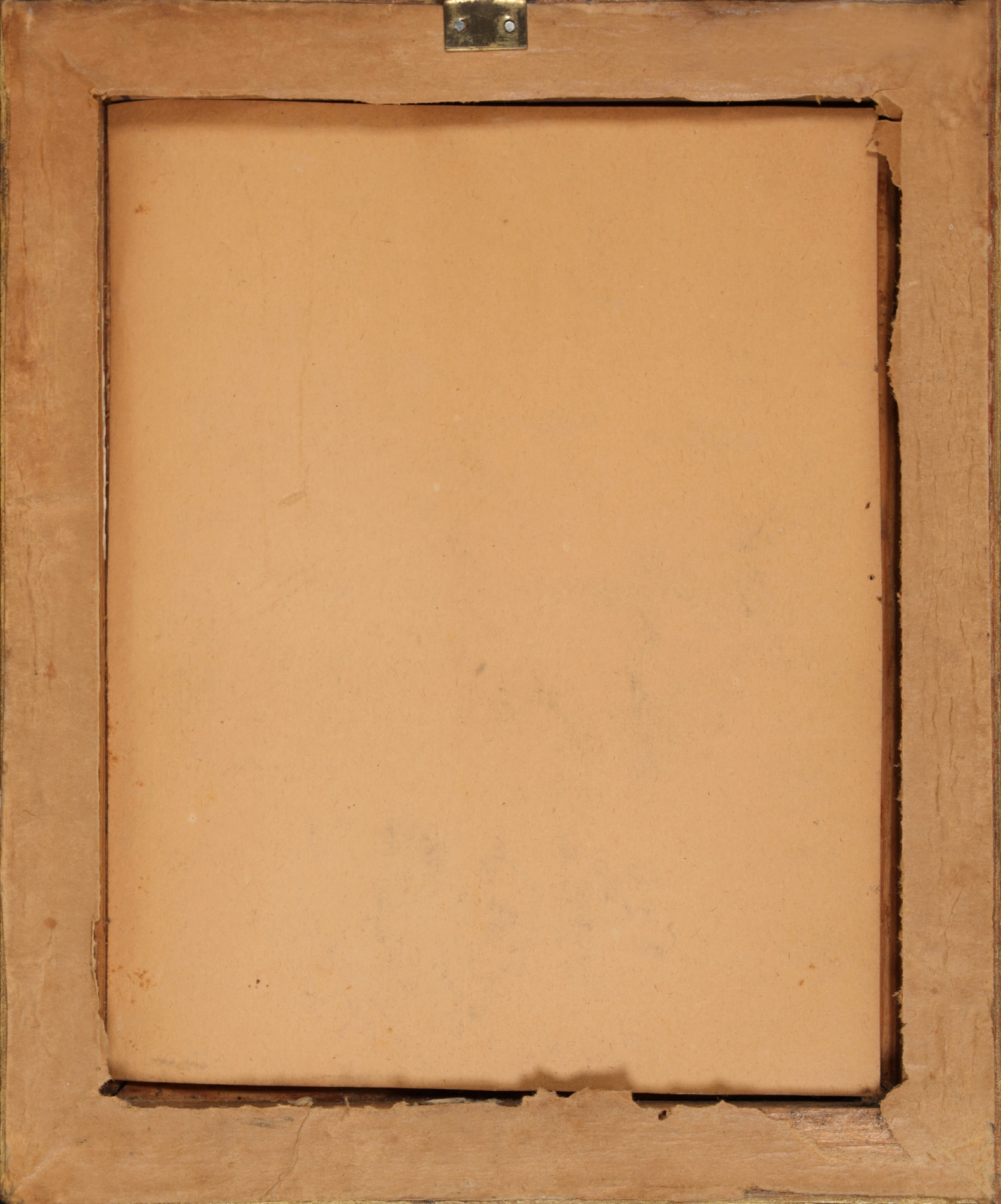 Na odwrocie pieczęć krakowskiej Fabryki Farb i Przyborów Malarskich "ISKRA & KARMAŃSKI". Obraz w przeszłości poddany konserwacji. Widoczny niewielki ubytek malatury (o średnicy ok. 1 cm) przy krawędzi obrazu (l.d.). PRACA NIEDOSTĘPNA | |