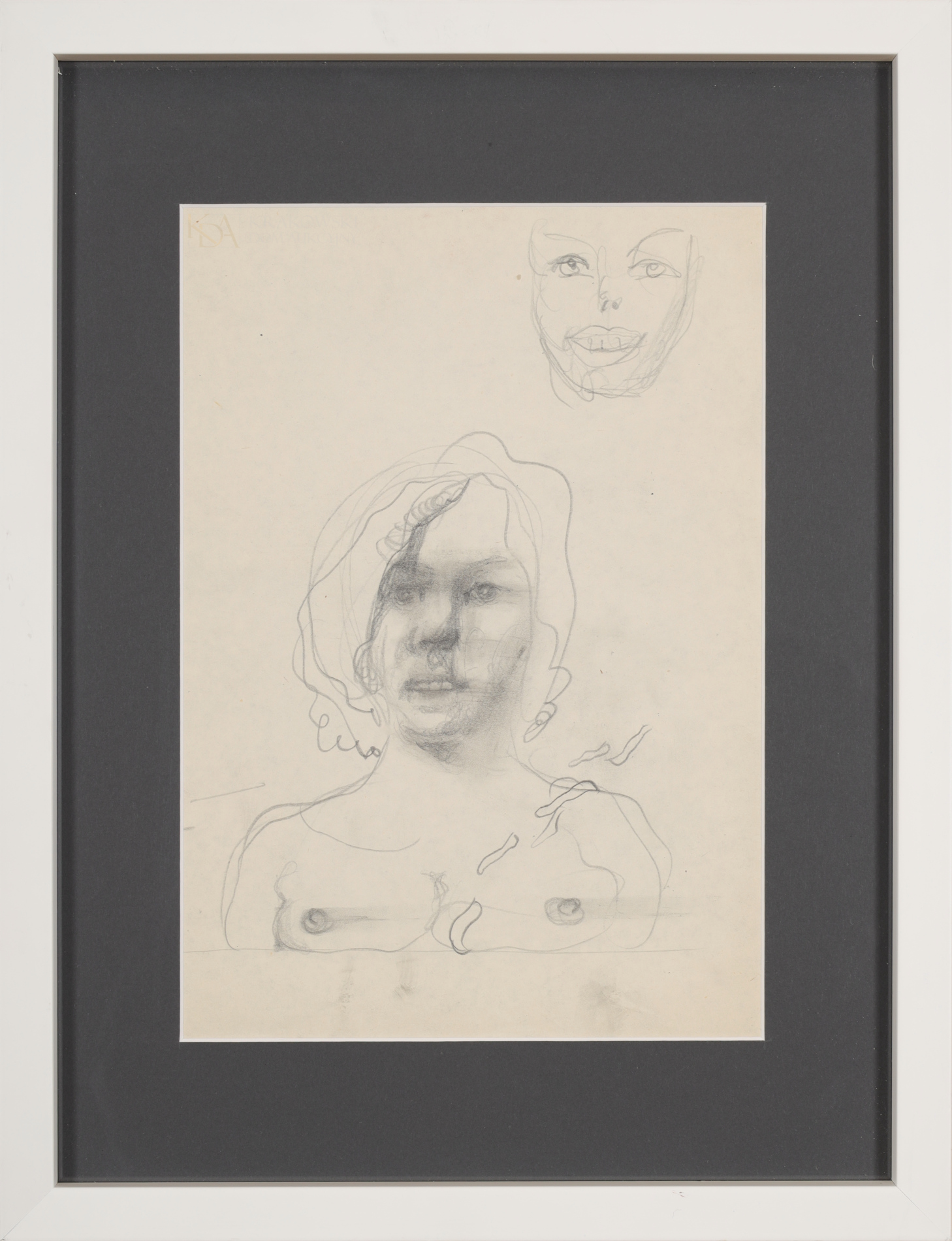 OPIS PRACY: Na stronie recto prezentowana praca ukazuje dwa kobiece akty. Krągłe ciała przywodzą skojarzenia z malarstwem doby baroku, które stanowiło ciągłe źródło inspiracji dla malarza i kolekcjonera – Franciszka Starowieyskiego. Charakterystyczne jest pominięcie ukazania głów, co w twórczości artysty było zabiegiem celowym. Brak ukazania twarzy w kompozycjach tego rodzaju miał w zamyśle twórcy wpłynąć na nieodwracanie uwagi odbiorcy od ludzkiego ciała. Z kolei na stronie verso znajdują się zapiski, którym towarzyszy półpostaciowy wizerunek Salome. Franciszek Starowieyski w swojej sztuce wielokrotnie powracał do motywu kobiecej, nierzadko hybrydalnej postaci trzymającej głowę mężczyzny. Artysta w ten sposób podejmował dialog z ikonografią sztuki europejskiej, ukazując bądź to Judytę z głową Holofernesa, bądź to Salome z głową Jana Chrzciciela. Niekiedy artysta dokonywał syntez tych dwóch motywów, ukazując na przykład Judytę z głową Jana Baptysty. PRACA NIEDOSTĘPNA | |