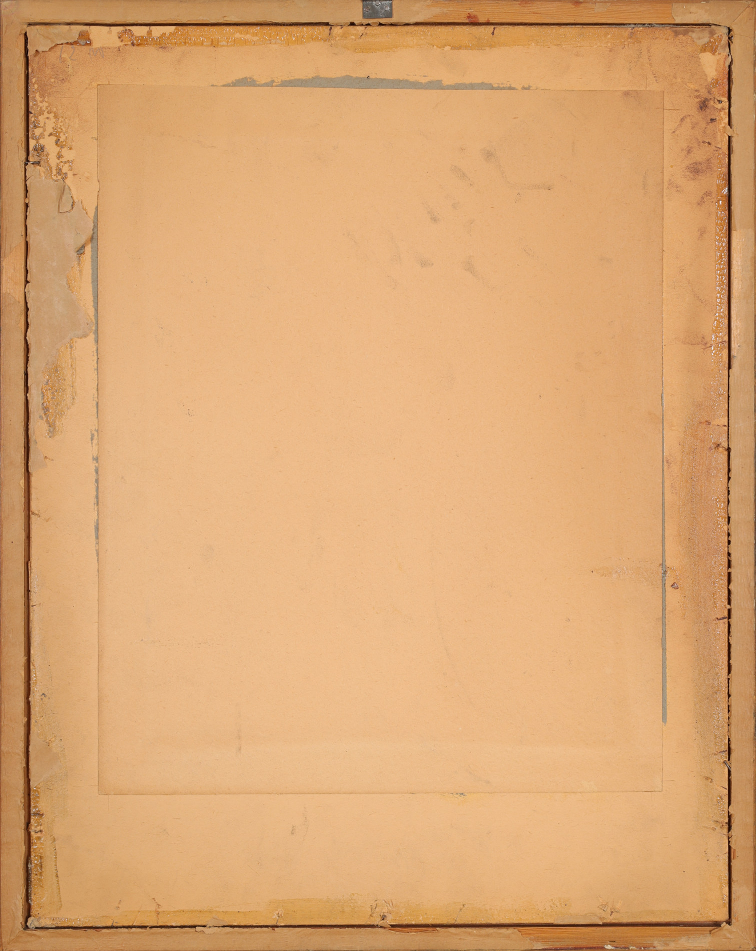 | Sygnowany i datowany p.d.: "JM [nieczytelne] 1891" Śr.d. nieczytelny opis kredką. Opisany p.g. ołówkiem numerem "7.", p.d. pieczątką z numerem "61". Na odwrocie pieczątka "ZE ZBIORÓW MARJI MALCZEWSKIEJ" z herbem Tarnawa. Na odwrocie oprawy opis dot. pieczątki oraz dedykacja z 1978 roku. Rysunek po konserwacji. | |
