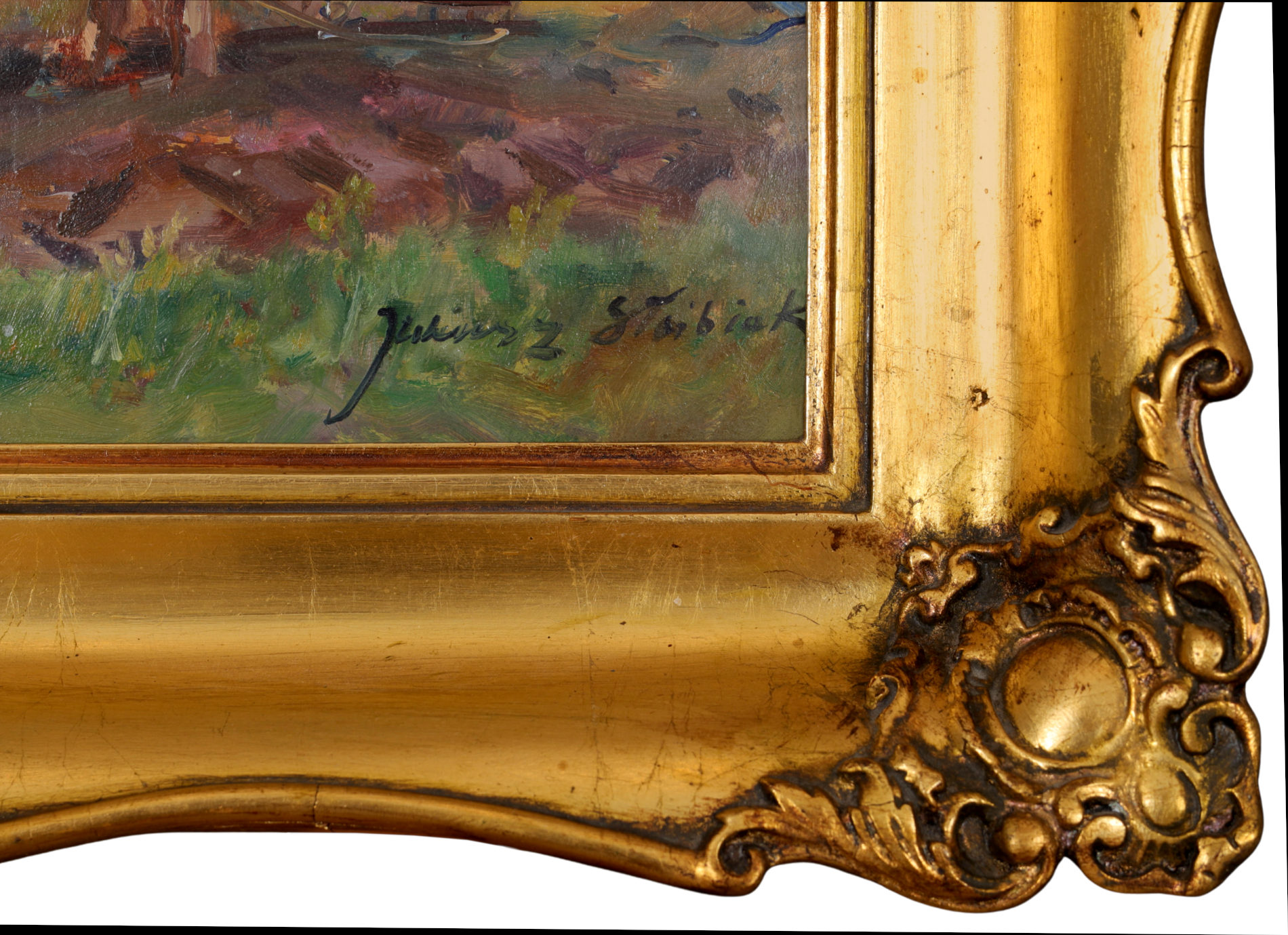 | Sygnowany l.d.: "Juliusz Słabiak" Widoczne ubytki malatury w lewym i prawym dolnym narożniku. | |