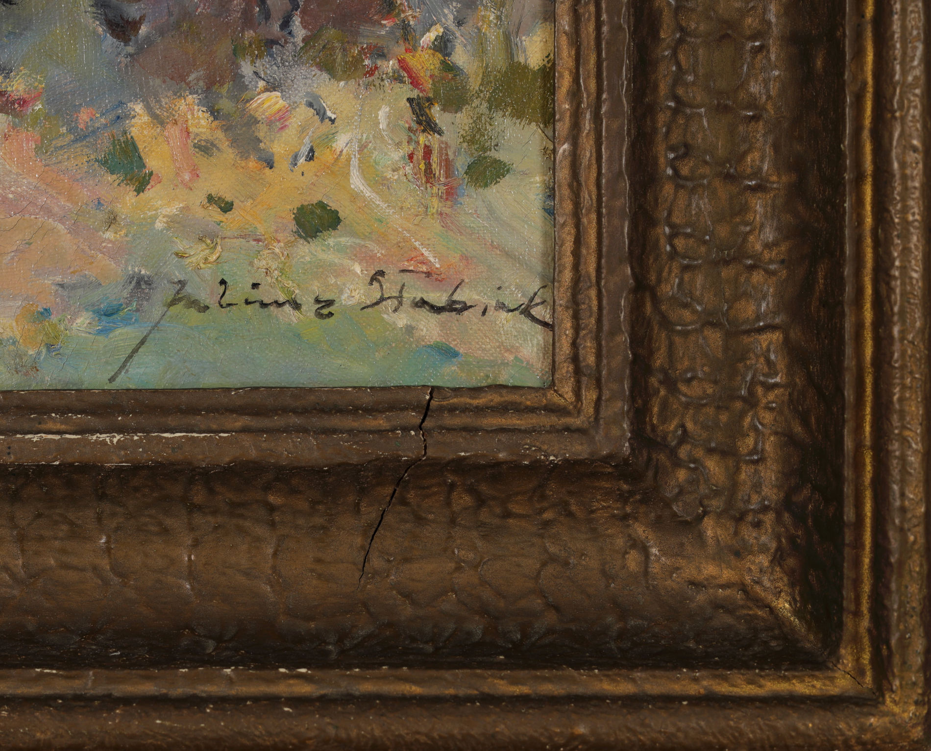 | Sygnowany p.d.: "Juliusz Słabiak" Widoczne ubytki malatury w dolnych narożnikach. | |