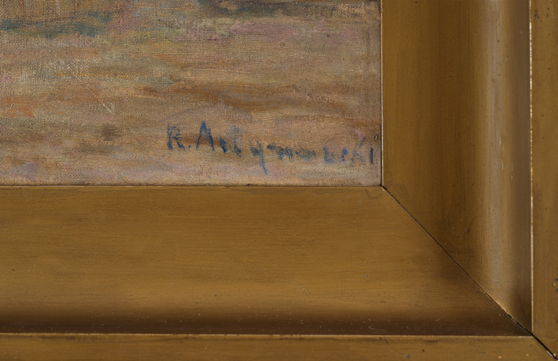 | Sygnowany p.d.: "R. Artymowski" Widoczne zabrudzenie malatury. | |