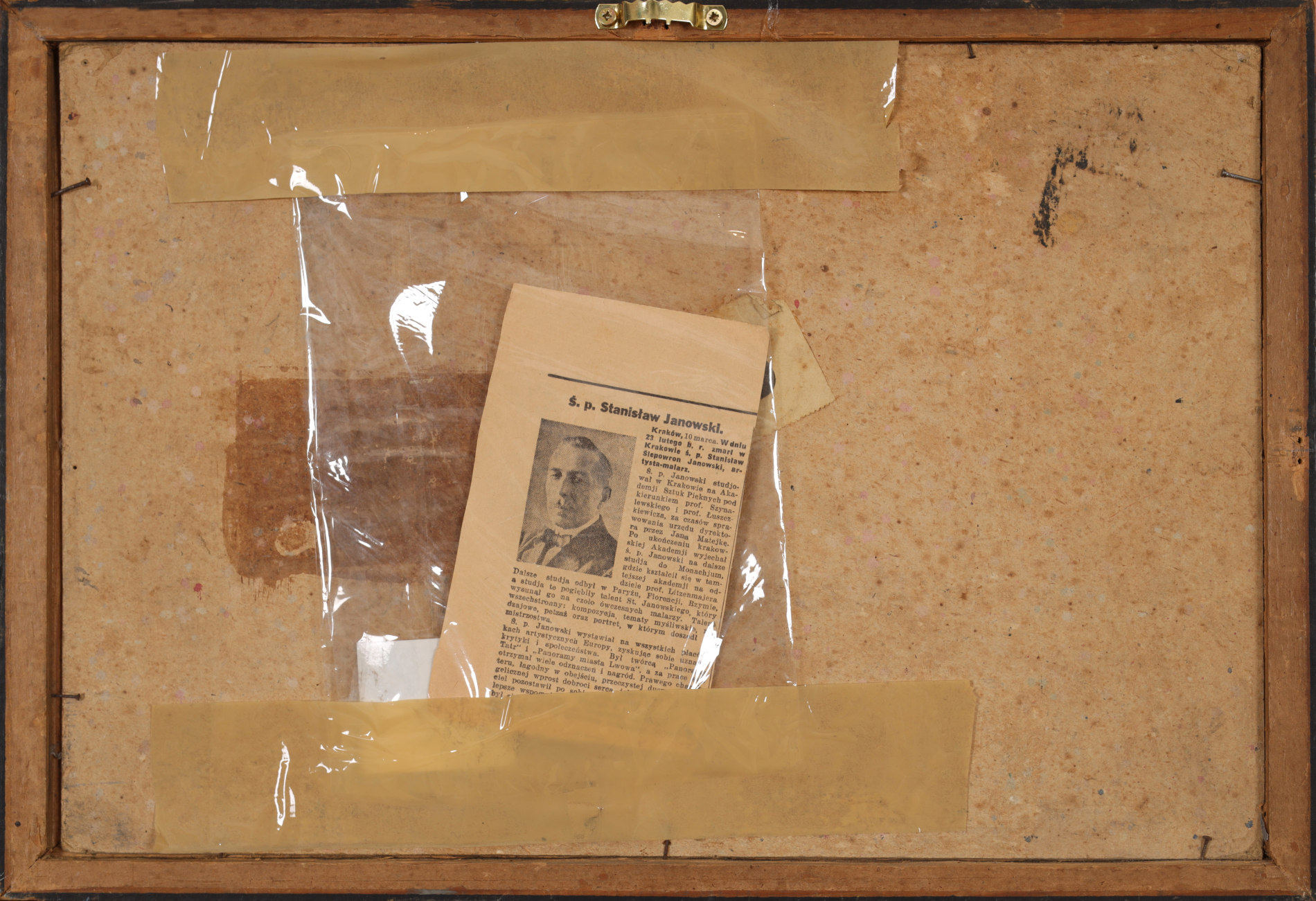 | Sygnowany i datowany l.d.: "4. I. 900 [?] | St. Janowski" Na odwrocie ołówkowy szkic ornamentu. | |