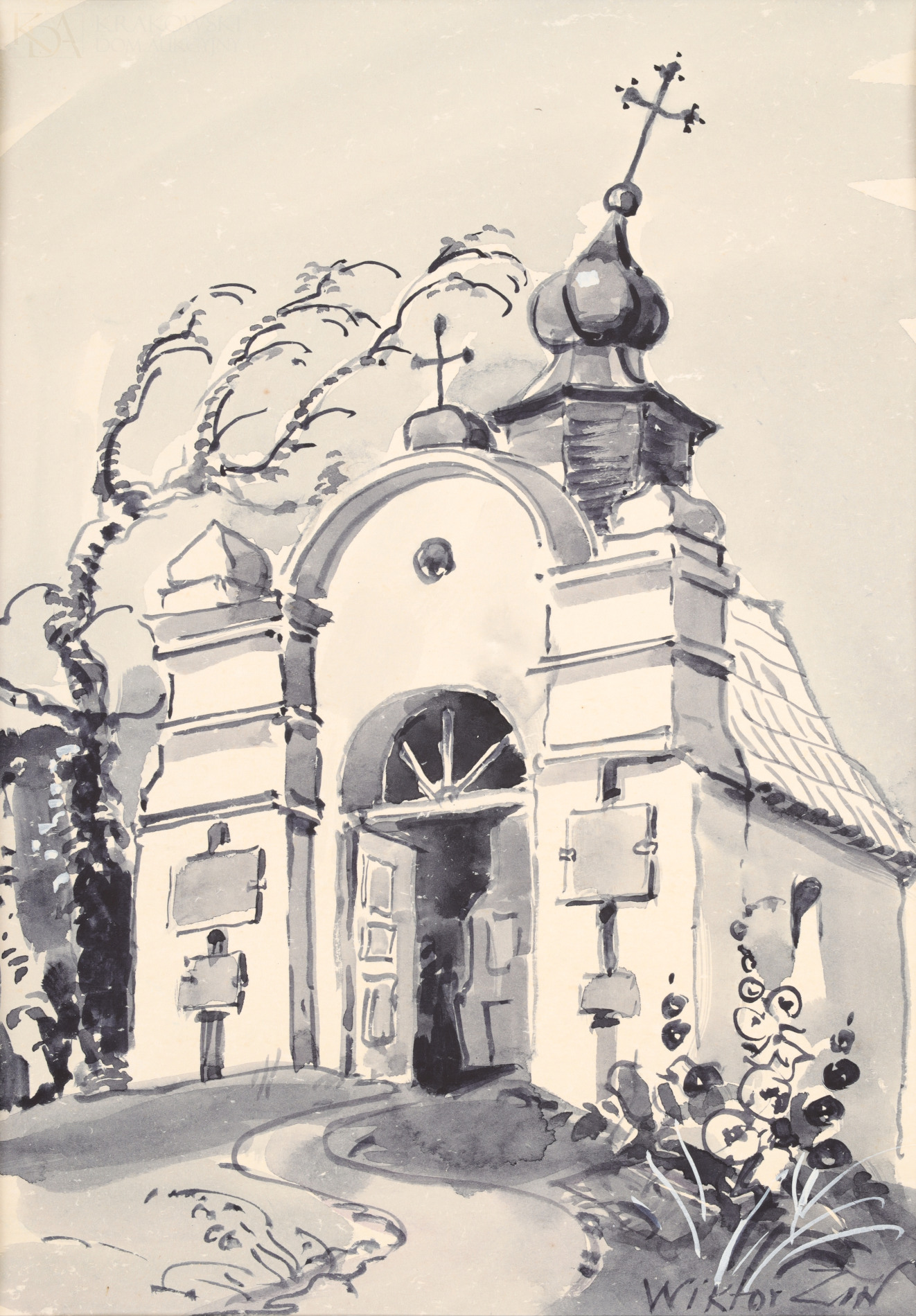 | Sygnowany i datowany p.d.: "WiktorZin | 1983" Opisany l.d.: "z teki bielańskiej - kościół" PRACA NIEDOSTĘPNA | |