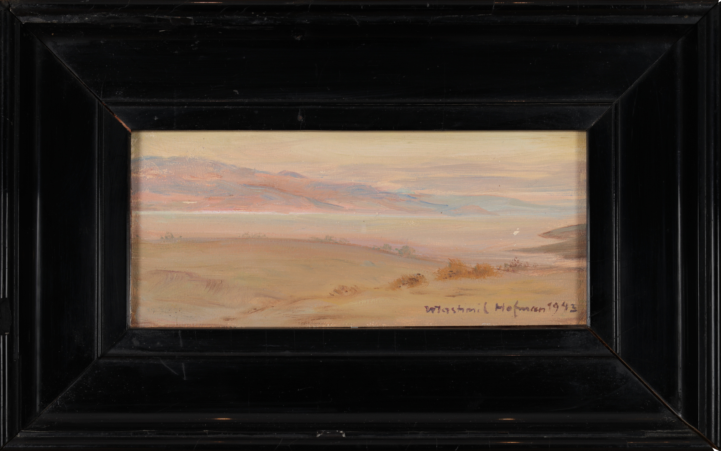 | Sygnowany i datowany p.d.: "Wlastimil Hofman 1943" Opisany na odwrocie: "Morze martwe | marzec 1943" | |