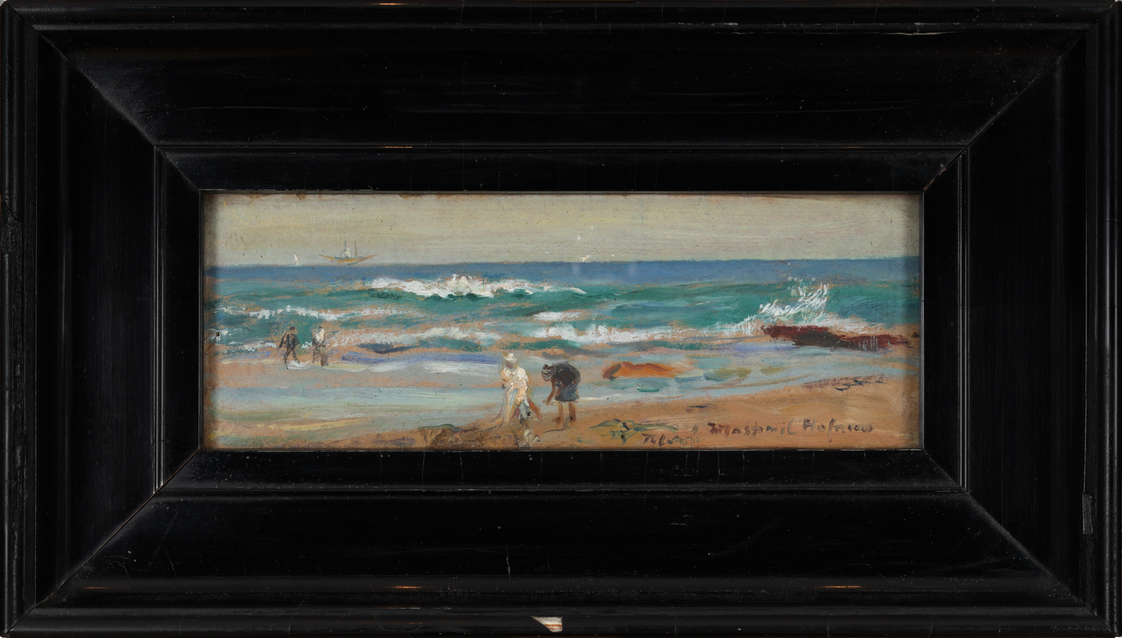 | Sygnowany p.d.: "Wlastimil Hofman" Opisany p.d.: "Telaviv" Na odwrocie szkic malarski mężczyzny z koniem. Opisany na odwrocie: "62 Rybacy Tel Aviv | 1941"; "TEL AVIV | 1941 | RYBACY" Śr.d. na licu widoczne niewielkie uszkodzenie podłoża. | |